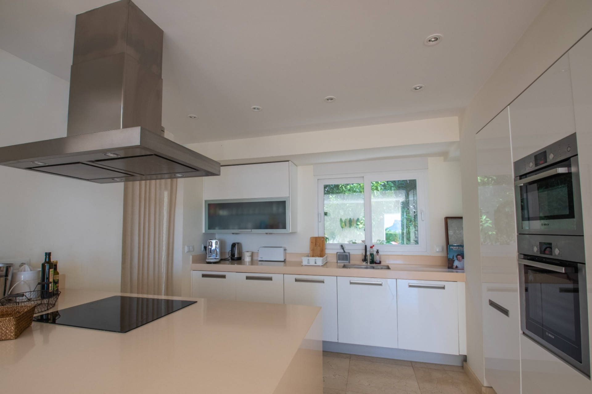 This Mediterranean-style villa sits in one of the most established areas of Moraira, just 900 metres from El Portet Bay and around 2 km from Moraira town centre. The location is one of the strongest features of this property: elevated, quiet and surrounded by well-kept residential homes, yet close to restaurants, essential services and the coastline. The area is highly sought after due to its access to coastal paths, water sports, marina facilities, and high-end dining options. El Portet is often considered one of the most desirable residential areas in the Costa Blanca North. The bay is known for its clear waters, family-friendly beach, and scenic walks leading directly to Moraira Marina. Cafés, bars, small delis and local services are all within walking distance, creating a practical and desirable everyday lifestyle. The land located to the left of the property is protected, ensuring the panoramic views remain unspoiled. The villa stands on a flat plot of 836 m², designed to make the most of its south-facing aspect. Access is via private gates that lead to a large open driveway with capacity for six cars, including a separate carport — ideal for guests or those who regularly host family visits. The front door opens into a hallway that flows into an open-plan living and dining area. Wide sliding doors connect this interior space to a covered naya, offering direct views across the Mediterranean Sea and towards the iconic Peñón de Ifach. The layout is designed for easy access between indoor and outdoor zones, making everyday living functional and comfortable. Two double bedrooms are located on this main level, one with its own en-suite, as well as a full family bathroom. Natural light, clean lines and practical storage solutions create a smooth flow throughout this floor. The upper level is dedicated to a private master suite, complete with en-suite bathroom and double doors that open to a spacious terrace. This area offers far-reaching sea and mountain views and works well as a quiet space to start the day. With minimal disturbance from surrounding properties, this upper level feels private without being isolated. The lower floor has been adapted to provide additional living space, including a large lounge, dining area, and a further double bedroom. There is also a leisure area equipped with a jacuzzi, with sufficient space to install a private gym, home cinema or games area depending on lifestyle requirements. This level offers potential for guest accommodation, a home office, or multi-generational use.
