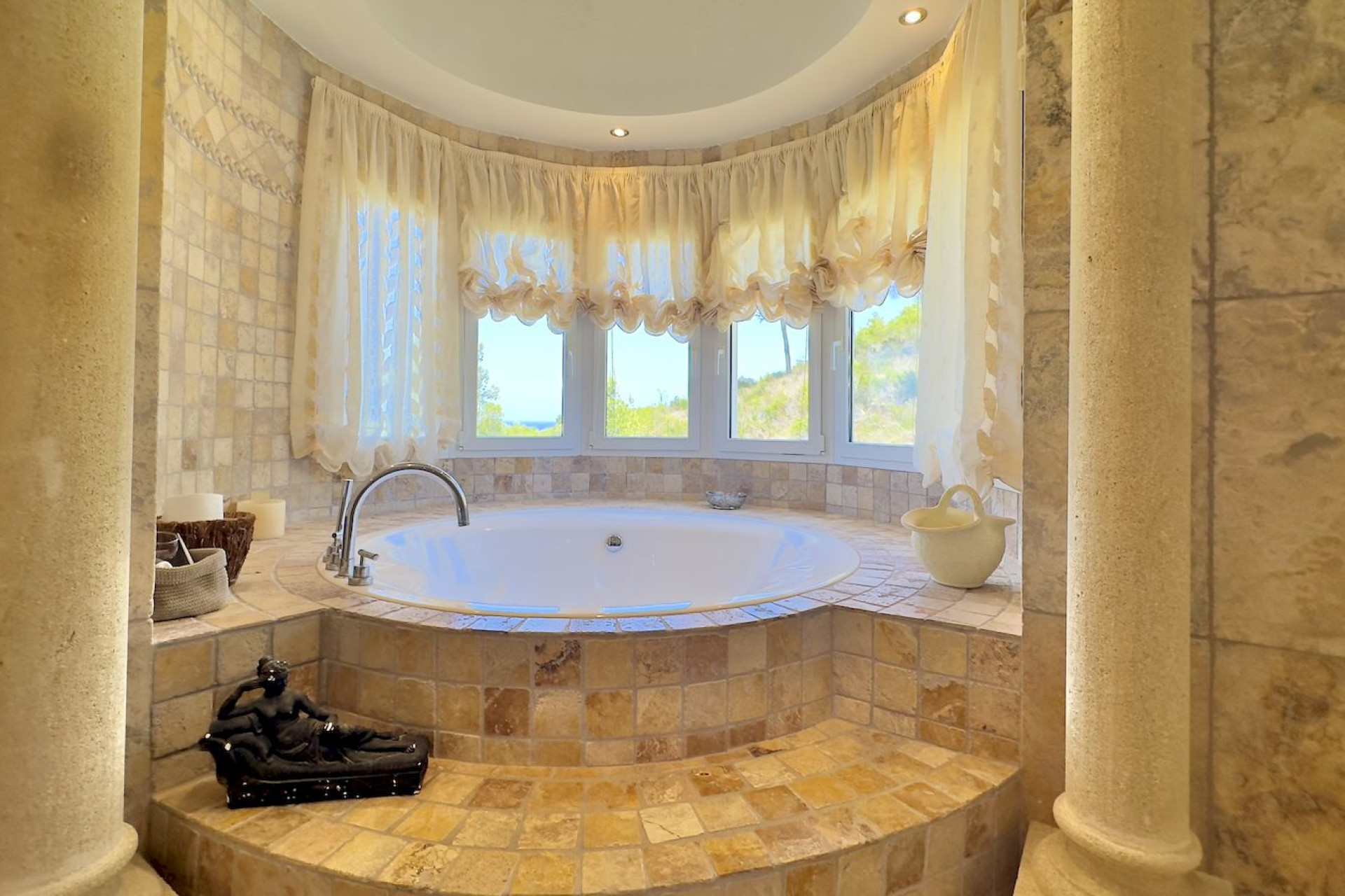 Discover Your Sanctuary in Javea/XabiaLocated in the exclusive area of Cap Martí - El Tossalet - Pinomar, this luxury villa redefines the concept of elegance and comfort, offering an unparalleled experience on the Alicante coast. With exceptional architectural design that highlights natural light and the fresh Mediterranean air, this property is a true oasis. Spaces Filled with LightWith a built area of 612 m² on a plot of 2080 m², the villa unfolds in a private setting, allowing its inhabitants to enjoy a relaxed and luxurious lifestyle. It is spread over 3 floors, featuring four spacious bedrooms and four bathrooms, all meticulously designed to provide unmatched comfort. The west-facing orientation of the house ensures that every moment of the day is bathed in warm sunlight. On the main floor, we find three bedrooms, 2 with en-suite bathrooms plus a full guest bathroom; this level also has a master suite with access to a terrace and views of the garden. The first floor entirely hosts the main master suite with a private living area, office, dressing room, and 2 terraces, offering views of the sea and mountains. An Interior Design that Invites RelaxationThe independent kitchen with a breakfast nook is equipped with designer elements that meet even the highest culinary demands. Its open design connects the spaces, promoting an atmosphere of togetherness and harmony. Underfloor heating throughout the house, gas heating, double-glazed windows, and shutters create a cozy environment year-round. Dreamy ExteriorsThe beautifully landscaped garden features a large private infinity pool measuring 13 meters x 7.5 meters, promising moments of relaxation and fun in the sun. Additionally, the villa includes a barbecue/summer kitchen area, ideal for enjoying pleasant afternoons with family and friends. The combination of open and covered terraces allows enjoyment of both the sun and the evening breeze, creating the perfect setting for outdoor entertaining. Exclusive AmenitiesThe amenities of this villa are endless. Features include a garage for 3 cars + parking for 2 cars, a large fireplace in the living room, gym or cinema area, laundry room, storage room, and an alarm system ensuring both comfort and security. The villa also boasts a jacuzzi for those relaxing moments you crave. The villa is connected to the sewage system and municipal gas. Furthermore, the property is fully fenced, offering a sense of privacy and security. Excellent Location and Connectivity Located in one of the most sought-after neighborhoods in Javea/Xabia, this villa enjoys excellent connections to key points of interest in the region. Proximity to magnificent beaches, high-end restaurants, and exclusive boutiques makes this place a true paradise for those seeking the best in quality of life. This villa is not just a place to live; it is a statement of style, elegance, and tranquility. A home where every corner invites you to enjoy life to the fullest.