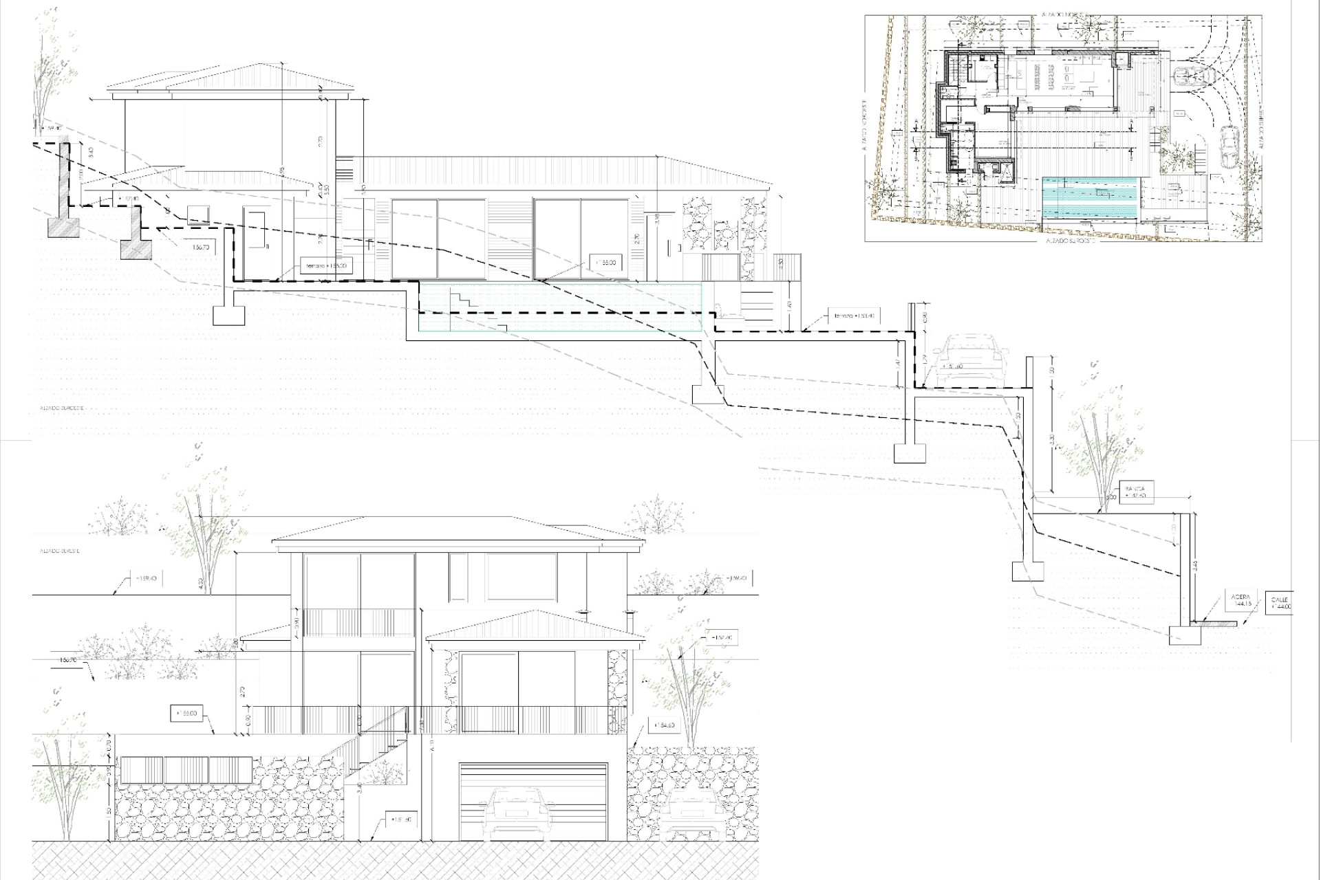 Luxury villa for sale in Benissa with panoramic sea views. It features 3 bedrooms, 2 bathrooms, a 9x4 m swimming pool, a 145 m² terrace, an outdoor kitchen, and a 60 m² garage. It includes underfloor heating, ducted air conditioning, solar panels, and high-quality finishes. Located just 5 minutes from Cala La Fustera.