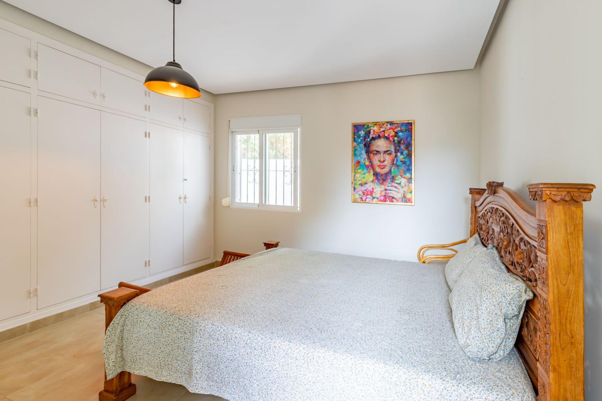 La vivienda cuenta con 212 m² construidos sobre una parcela de 693 m² y se distribuye en dos niveles. En la planta principal encontramos dos dormitorios dobles, cada uno con su propio baño en suite, además de un salón comedor luminoso que conecta directamente con la terraza superior desde donde se disfrutan agradables vistas al Mediterráneo. En la planta inferior se ubica un tercer dormitorio independiente con baño completo y salida directa a la zona de piscina, un espacio ideal para invitados o incluso para crear un apartamento privado con total privacidad.