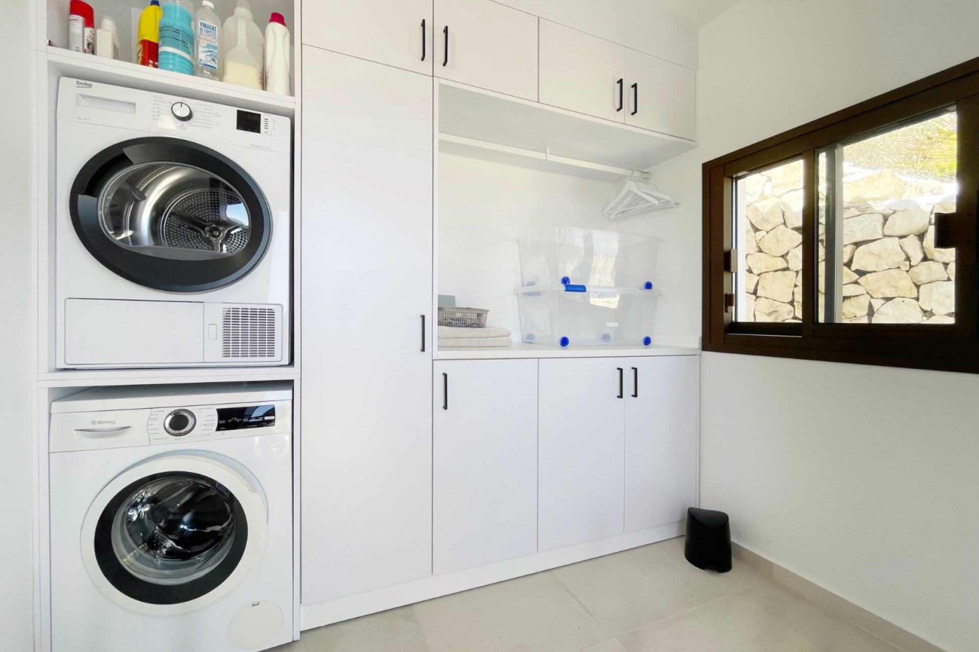 Descubra esta lujosa villa lista para entrar a vivir en Moraira, situada en la conocida zona de Benimeit, en uno de los lugares más bonitos de la Costa Blanca. La vivienda, orientada al sur, ofrece unas impresionantes vistas panorámicas al mar Mediterráneo, las verdes montañas y la costa, y combina el confort moderno con detalles mediterráneos. Todo ello a pocos minutos en coche del acogedor centro de Moraira. Esta villa recientemente renovada en Moraira está acabada al detalle con materiales de alta calidad y atención al detalle. La villa está equipada con calefacción central mediante bomba de calor, aire acondicionado, paneles solares, ventanas y puertas de la mejor calidad y cuenta con el certificado energético B, lo que garantiza un bajo consumo energético.