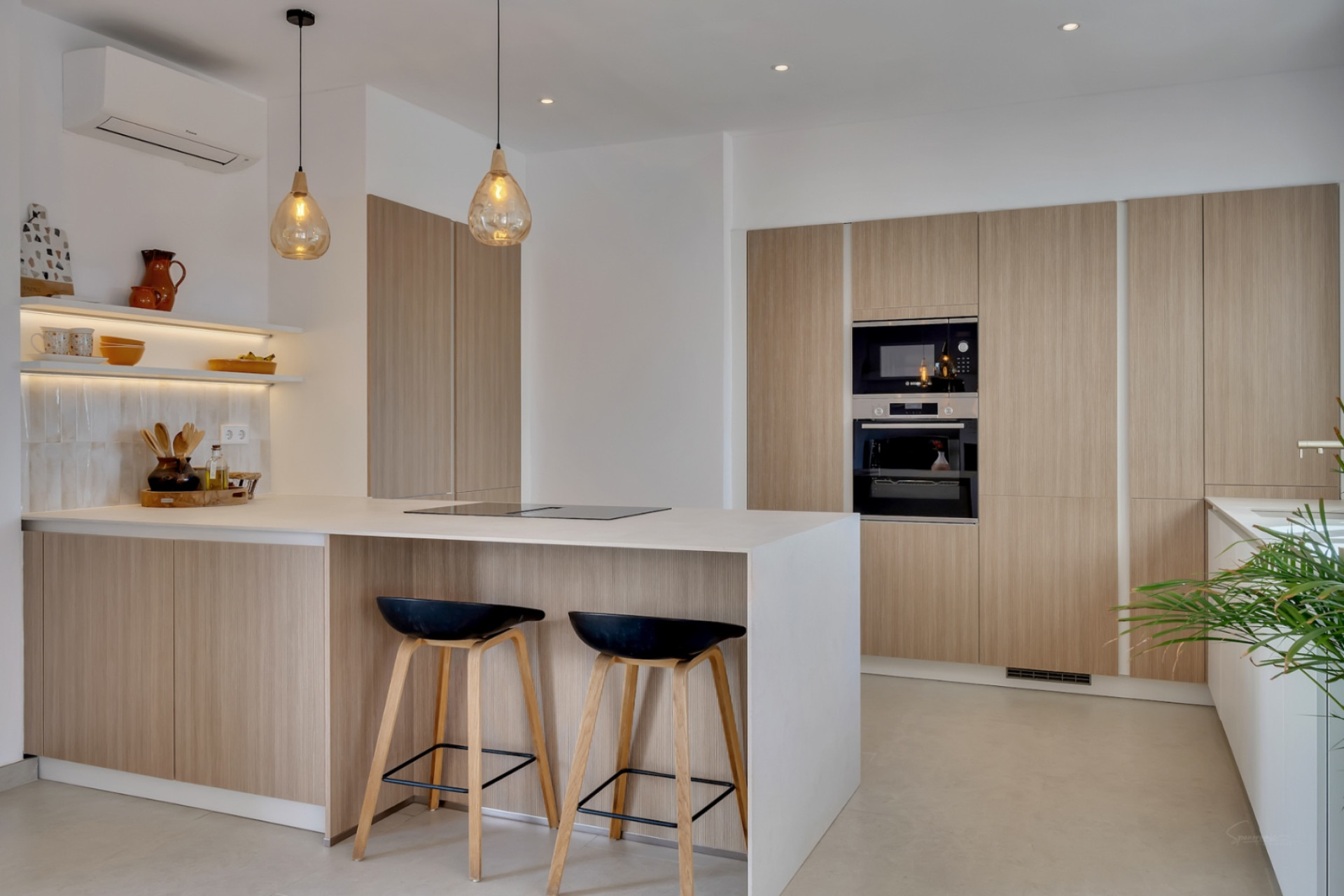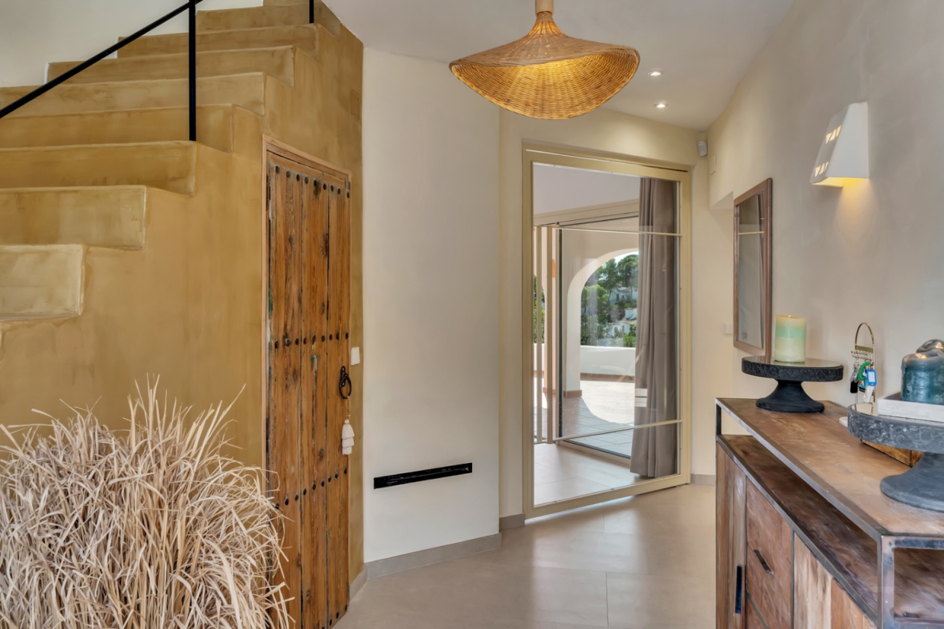 Villa mediterránea atemporal con magníficas vistas al mar, completamente renovada y a solo 5 minutos a pie del centro de Moraira!Esta villa orientada al sur se encuentra en uno de los barrios residenciales más tranquilos y exclusivos de Moraira, en una calle silenciosa y a solo unos cientos de metros del centro y la playa. Moraira es conocida por su ambiente relajado, excelentes restaurantes, boutiques y encantador casco antiguo, lo que la convierte en un lugar ideal para vivir o pasar las vacaciones durante todo el año. La proximidad a servicios, supermercados y actividades acuáticas hace que esta ubicación sea aún más atractiva y cómoda. La elegante villa de aproximadamente 250 m² está completamente renovada con materiales de alta calidad y un diseño atemporal que combina detalles mediterráneos con un toque contemporáneo de Ibiza. Situada en una parcela de 735 m², ofrece un vistas impresionantes a la famosa roca de Calpe, el Peñon d'Ifach, y las turquesas aguas del mar. Al entrar a través de la puerta de acceso controlada por video, disfrutarás de inmediato del jardín de fácil mantenimiento y de la impresionante puerta principal Irroco. El amplio hall de entrada con aseo de invitados conduce a una sala de estar abierta, comedor y cocina con isla de cocina. La cocina está equipada con electrodomésticos de alta calidad de Bosch y tiene un diseño elegante y sobrio. Una estufa de pellets (con control Wi-Fi) proporciona calor y ambiente en la sala de estar. Gracias a ventanas grandes, la luz natural fluye a través de la vivienda y tienes acceso a dos terrazas: en la parte delantera una hermosa naya con arcos y vistas espectaculares al mar y al Peñon, y en la parte trasera un íntimo patio rodeado de vegetación, ideal para desayunar al sol o refrescarse en días calurosos. En la planta principal hay un amplio dormitorio doble con armarios empotrados y un baño en suite de microcemento con ducha a ras de suelo. Este luminoso dormitorio ofrece acceso directo a la terraza. En la planta superior se encuentra un espacio polivalente con acceso a dos amplios dormitorios, cada uno con su propio baño. El dormitorio principal es un verdadero oasis con vistas panorámicas, un baño abierto con ducha y bañera exenta, un vestidor y una terraza privada cubierta. El tercer dormitorio también cuenta con armarios empotrados y un baño de microcemento con ducha a ras de suelo, acabado hasta en el más mínimo detalle. El espacio exterior está muy bien pensado: una terraza con solárium y elegantes sombrillas, un área de barbacoa cubierta y una piscina completamente privada que recibe sol todo el día. Al mismo nivel que la piscina hay un apartamento de invitados con baño, zona de estar y rincón de café. Además, hay un lavadero, trastero y dos plazas de aparcamiento en el propio terreno. La villa está equipada para ofrecer el máximo confort todo el año y está completamente aislada. Hay aire acondicionado en todas las habitaciones (frío, calor, deshumidificación,...), ventanas con marcos de aluminio Reynaers y vidrio de seguridad con protección solar, persianas eléctricas, mosquiteras, paneles solares, calefacción solar, sistema de alarma con cámaras y función de grabación, y una preinstalación para la carga de coches eléctricos. Características principales: • Ubicada a 600 metros del centro • Hermosas vistas al mar y al Peñon D'Ifach • Orientada al sur • 3 dormitorios con baño propio + alojamiento de invitados totalmente equipado • Hall de entrada con aseo de invitados • Gran naya y patio • Jardín de fácil mantenimiento • Piscina privada de forma libre • 2 plazas de aparcamiento en el terreno • ¡Villa energéticamente eficiente! Una villa con carácter, diseñada para personas que buscan calidad, privacidad y cercanía al mar y al centro, sin comprometer la vista. Ideal como vivienda permanente o casa de vacaciones. ¡Contáctanos ahora para visitar esta villa!