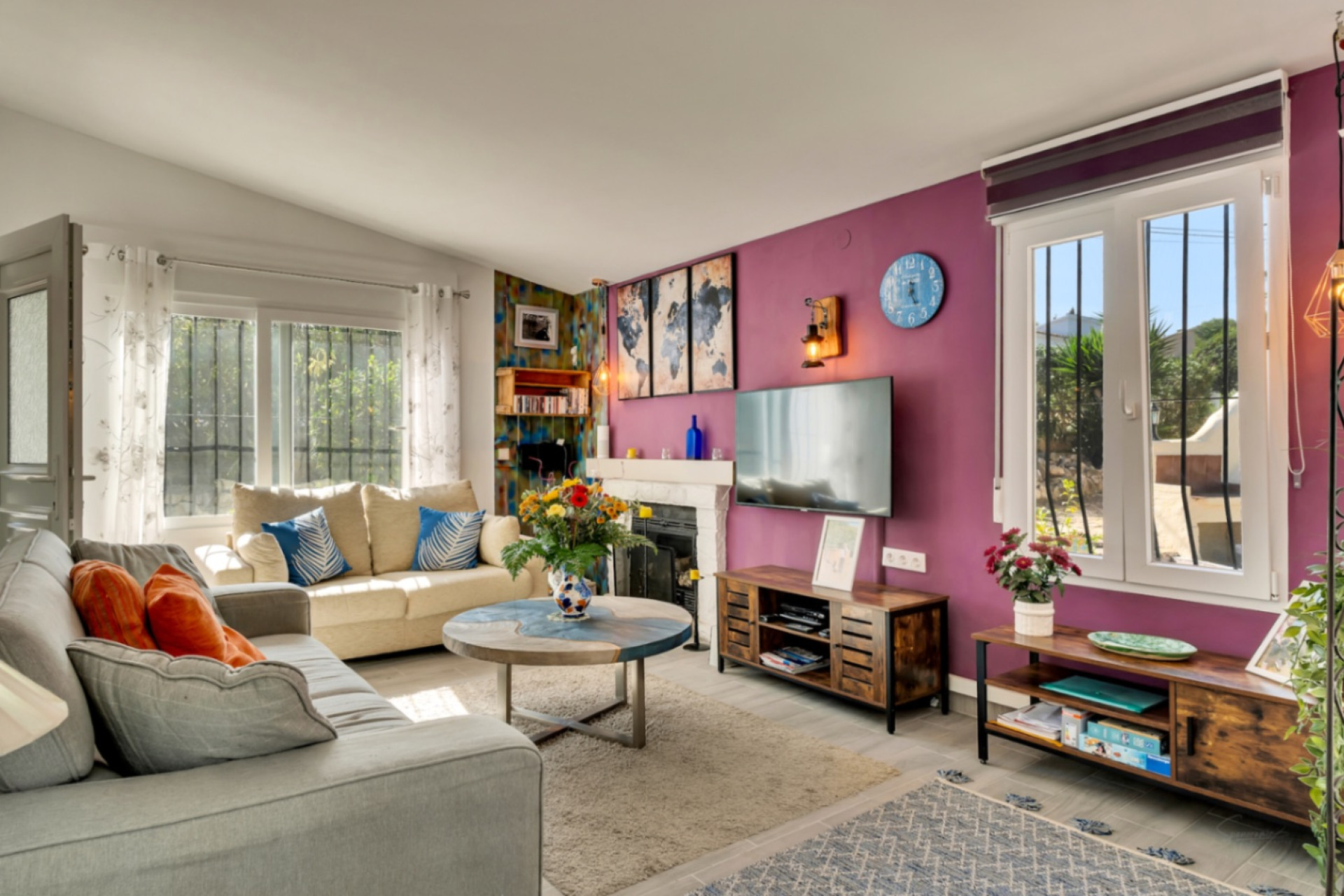 ¡Encantadora villa de una sola planta en venta con 3 dormitorios, 2 baños, una piscina privada y un garaje a poca distancia de los servicios en La Sabatera, Moraira!¡Esta hermosa villa independiente se encuentra en una de las zonas más demandadas de Moraira! A solo 400 metros hay un supermercado, tiendas y un restaurante. La propiedad limita con una zona verde, lo que proporciona mucha tranquilidad, privacidad y una hermosa vista del entorno natural. El centro y la playa están a solo cinco minutos en coche. La parcela completamente llana y la distribución en una sola planta ofrecen una comodidad óptima. Puedes entrar sin subir escaleras a la luminoso salón y comedor, que tiene acceso directo a la Naya y a la piscina privada. La sala de estar cuenta con aire acondicionado y una acogedora chimenea, ideal tanto para el verano como para el invierno. Adyacente se encuentra la cocina moderna con barra de desayuno, equipada con todos los electrodomésticos. Grandes ventanales dan acceso a una terraza acogedora con pergola, perfecta para comer al aire libre o relajarse. Junto a la cocina hay un práctico espacio de lavandería. El fantástico dormitorio principal tiene acceso a un balcón con hermosas vistas de la zona verde y cuenta con un baño en suite con ducha. Además, hay dos amplios dormitorios de invitados y un segundo baño con ducha, lo que proporciona comodidad adicional para residentes y huéspedes. El espacio exterior es un verdadero paraíso: sol todo el día, total privacidad y diversas áreas de estar, incluyendo un acogedor bar. Puedes elegir entre sol y sombra, dependiendo del momento del día. Además, hay un amplio garaje, un trastero y en la parte superior hay un solárium con impresionantes vistas panorámicas. La villa fue renovada en 2019 y cuenta con un nuevo tejado aislado, nuevos suelos, doble acristalamiento con mosquiteras y persianas, nuevas puertas, aire acondicionado y una estufa de leña. Características principales: Villa de una sola plantaA poca distancia de los serviciosOrientación sur a suroesteRenovación completa en 2019Piscina privadaNayaGaraje y trasteroSolárium con vistasUna villa lista para entrar a vivir en una ubicación privilegiada en Moraira, con una orientación solar ideal y todo el confort que puedes desear. ¡No esperes más y programa una visita pronto!