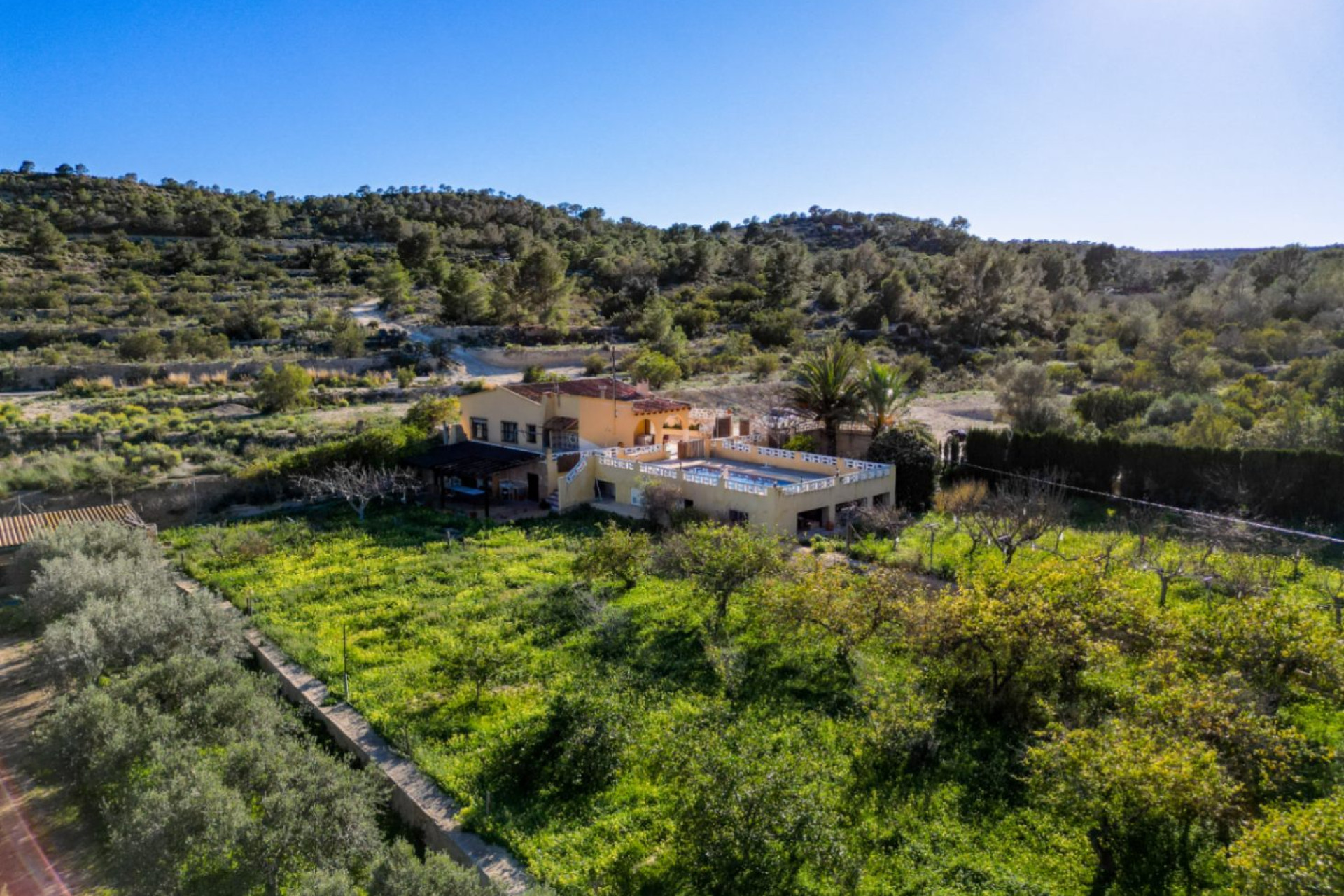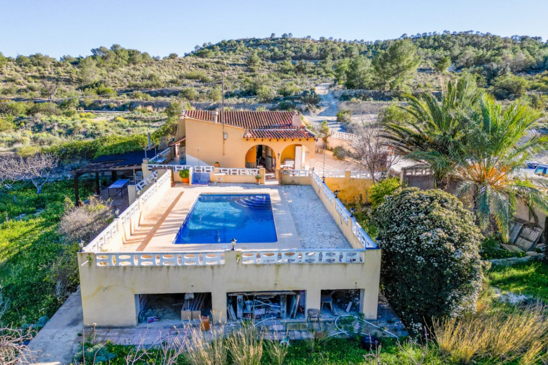 Ubicada en el tranquilo campo a solo minutos de la localidad de Villajoyosa, esta encantadora finca ofrece una rara oportunidad de poseer un retiro rural tranquilo con amplios terrenos y comodidades privadas. Situada en una extensa parcela de aproximadamente 10,000 m², la propiedad combina carácter rústico con vida al aire libre, proporcionando un entorno privado y pintoresco a corta distancia de playas, servicios y atracciones locales. La finca cuenta con una superficie construida de aproximadamente 134 m², con alojamiento interno que incluye tres habitaciones y un baño. Los espacios de vida son cómodos y funcionales, centrados en una amplia sala de estar y comedor con una chimenea de leña tradicional que realza la calidez y el carácter del lugar. En el exterior, la propiedad está rodeada de árboles frutales maduros y paisajes naturales abiertos, creando un entorno privado y pacífico ideal para quienes buscan un ritmo de vida más lento o una escapada al campo. Una gran terraza ofrece vistas sobre la tierra, y hay una piscina establecida, perfecta para disfrutar del cálido clima mediterráneo. Un horno de leña tradicional y un área de barbacoa mejoran las opciones de vida al aire libre, proporcionando espacio para cenas al aire libre y entretenimiento. El terreno también incluye útiles características auxiliares como un gallinero y un pozo de extracción de agua, que pueden apoyar un uso sostenible del agua y mejorar el estilo de vida rural independiente que se ofrece. Hay abundante espacio de estacionamiento, y el tamaño de la parcela permite a los compradores potenciales explorar mejoras paisajísticas o de ocio adicionales, sujeto a permisos de planificación. A pesar de su entorno tranquilo, la finca sigue estando convenientemente ubicada a poca distancia de las comodidades locales, el embalse de Embalse de Amadorio con sus áreas de caminatas y recreación, y las playas, restaurantes y servicios de la localidad. Esta propiedad representa una oportunidad única de poseer un pedazo del campo mediterráneo en Villajoyosa: un hogar versátil que puede funcionar como residencia permanente, refugio de fin de semana o escapada de vacaciones de alta calidad.