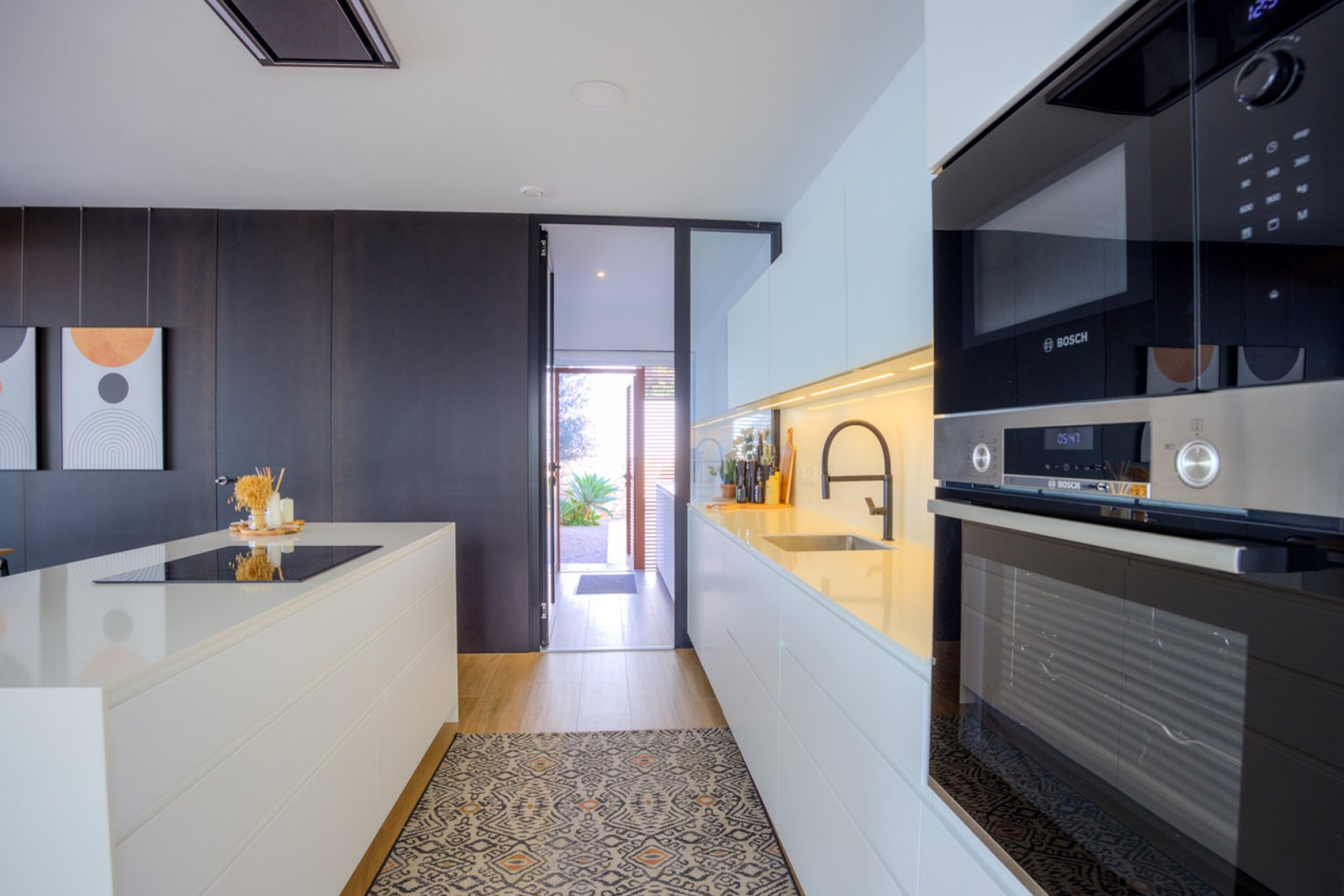 LA VILLA DE DISEÑO DE PLAYA DE LUJO DE MORAIRADisfrute del lujo moderno en esta impresionante villa, perfectamente situada a pocos pasos de las playas de arena y los animados servicios de La Cometa. Esta exclusiva propiedad combina un diseño contemporáneo con una ubicación inmejorable, ofreciendo un cómodo acceso a tiendas, restaurantes y lugares de ocio. A poca distancia se encuentran las playas de La Ampolla y Les Platgetes, así como la ciudad de Moraira y la pintoresca cala de Cala Andrago, conocida por sus encantadores bares y restaurantes junto al mar.Espacios interiores sofisticadosLa planta principal está dedicada a la vida en planta abierta y a la conexión con el clima mediterráneo. Una amplia sala de estar es el corazón de la casa, enmarcada por puertas correderas de cristal de altura completa que conectan sin esfuerzo el espacio con dos zonas exteriores distintas: un tranquilo patio interior y la soleada terraza de la piscina, orientada al sur. Hacia la parte trasera, la cocina y el comedor de planta abierta ofrecen acceso directo a una zona de comedor al aire libre y al jardín. Esta planta se completa con un aseo para invitados y un práctico lavadero, que alberga discretamente la lavadora, la secadora y un espacio de almacenamiento adicional.La planta superior es un santuario privado. La suite principal, de hermosas proporciones, domina la parte delantera y cuenta con amplios armarios empotrados, un elegante cuarto de baño contemporáneo y una terraza privada con cautivadoras vistas al mar. En la parte trasera, los dormitorios dos y tres están bien equipados con armarios empotrados y comparten el acceso a una encantadora terraza patio, junto con un moderno cuarto de baño compartido para invitados.Jardines privados y de bajo mantenimientoSituadas en una parcela llana totalmente cerrada y aprovechable, las zonas exteriores están diseñadas para el disfrute y la simplicidad. El punto focal es la piscina rectangular de 9,5 metros (con preinstalación para calefacción), rodeada por una elegante zona de descanso a la sombra. Junto a ella se encuentra una encantadora terraza comedor y barbacoa, perfectamente sombreada por una vela. El jardín cuenta con palmeras maduras y plantas mediterráneas sobre zonas de grava, lo que garantiza un mantenimiento mínimo y conserva un ambiente exuberante. Las puertas motorizadas de seguridad dan acceso a una zona de aparcamiento privada y cerrada para dos vehículos.Características y especificaciones de primera calidadEsta excepcional propiedad se ofrece totalmente amueblada y equipada (los vendedores solo retirarán los objetos personales). Las especificaciones clave incluyen: Climatización en toda la casa mediante una bomba de calor aerotérmica de bajo consumo. Sistema de calefacción por suelo radiante en ambos niveles. Aire acondicionado por conductos frío y calor. Persianas motorizadas y cortinas de tela en todas las zonas de estar y dormitorios principales. Sistema de iluminación avanzado, que incluye iluminación ambiental interna e iluminación del jardín controlada por temporizador. Un lavadero independiente y un amplio espacio de almacenamiento exterior, que incluye una gran instalación debajo de la terraza de la piscina.