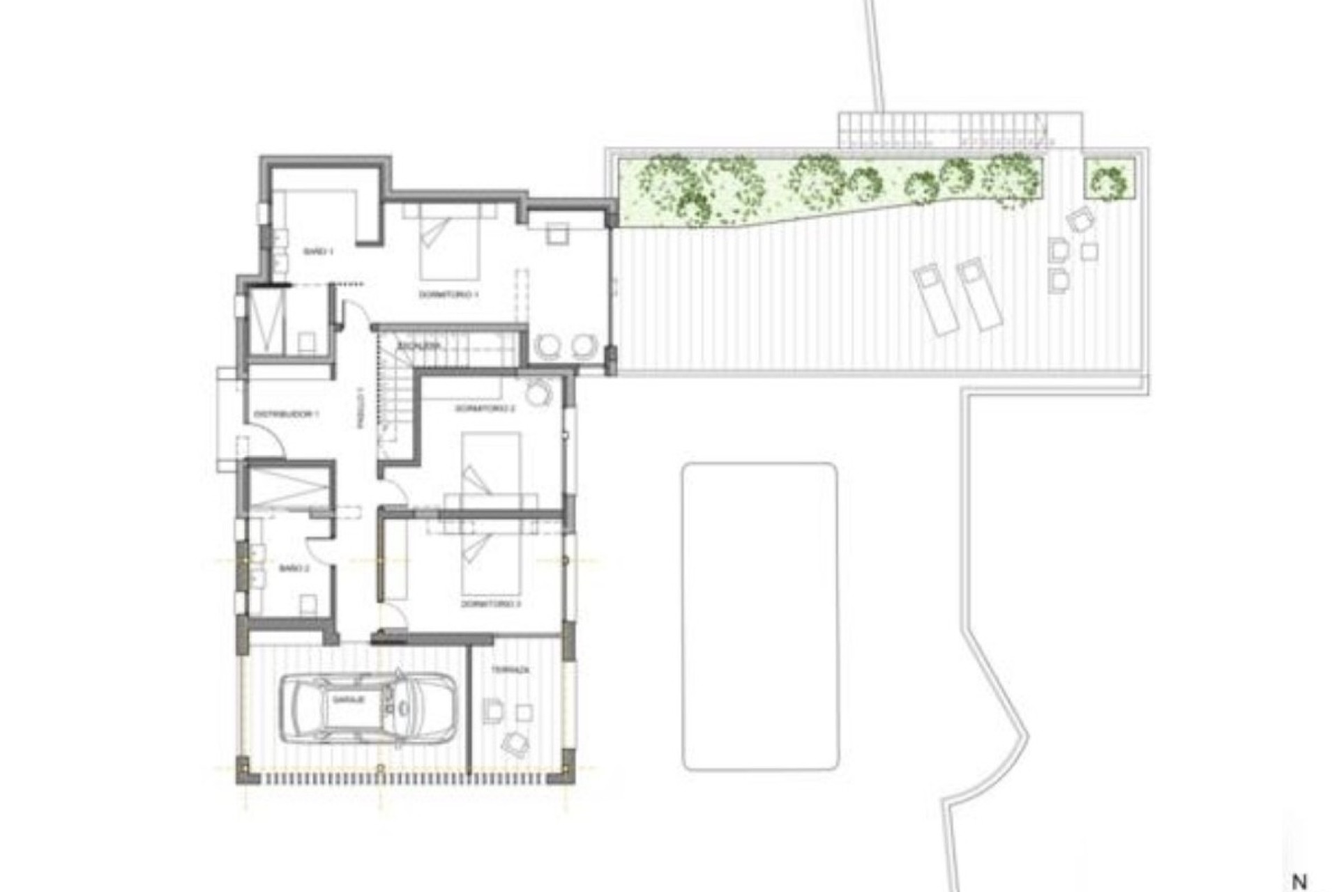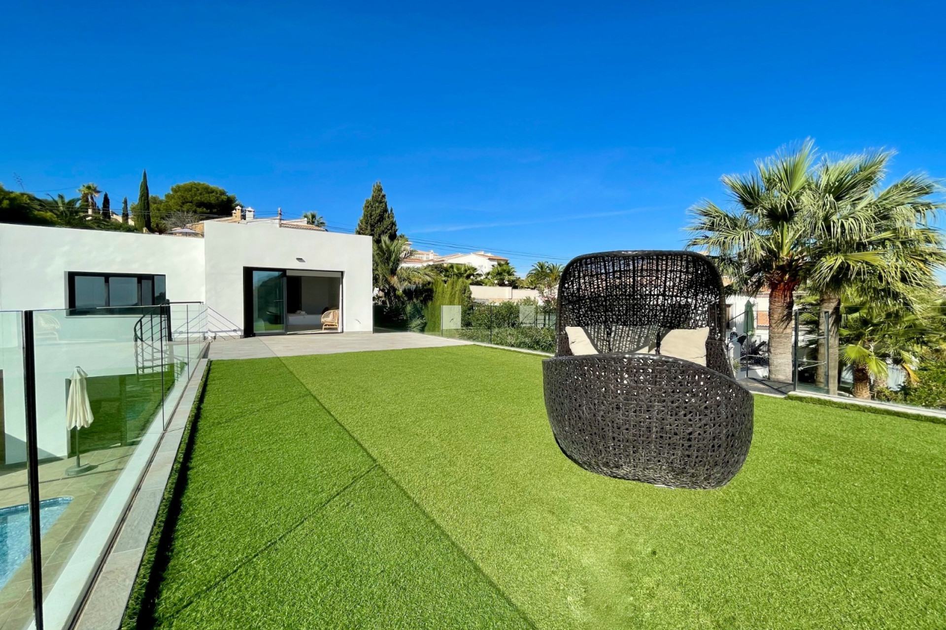 Een ruim zonneterras met privézwembad biedt de perfecte plek om te ontspannen en te genieten van het heerlijke klimaat aan de Costa Blanca. Het zwembad beschikt over verwarming en een buitendouche, zodat je het hele jaar door comfortabel kunt zwemmen.Er is ook een gezellige barbecuehoek, ideaal voor zomerse diners met uitzicht op zee. De tuin is onderhoudsvriendelijk aangelegd, wat zorgt voor een strak en verzorgd geheel. Daarnaast biedt het perceel voldoende parkeerruimte en een afsluitbare carport.