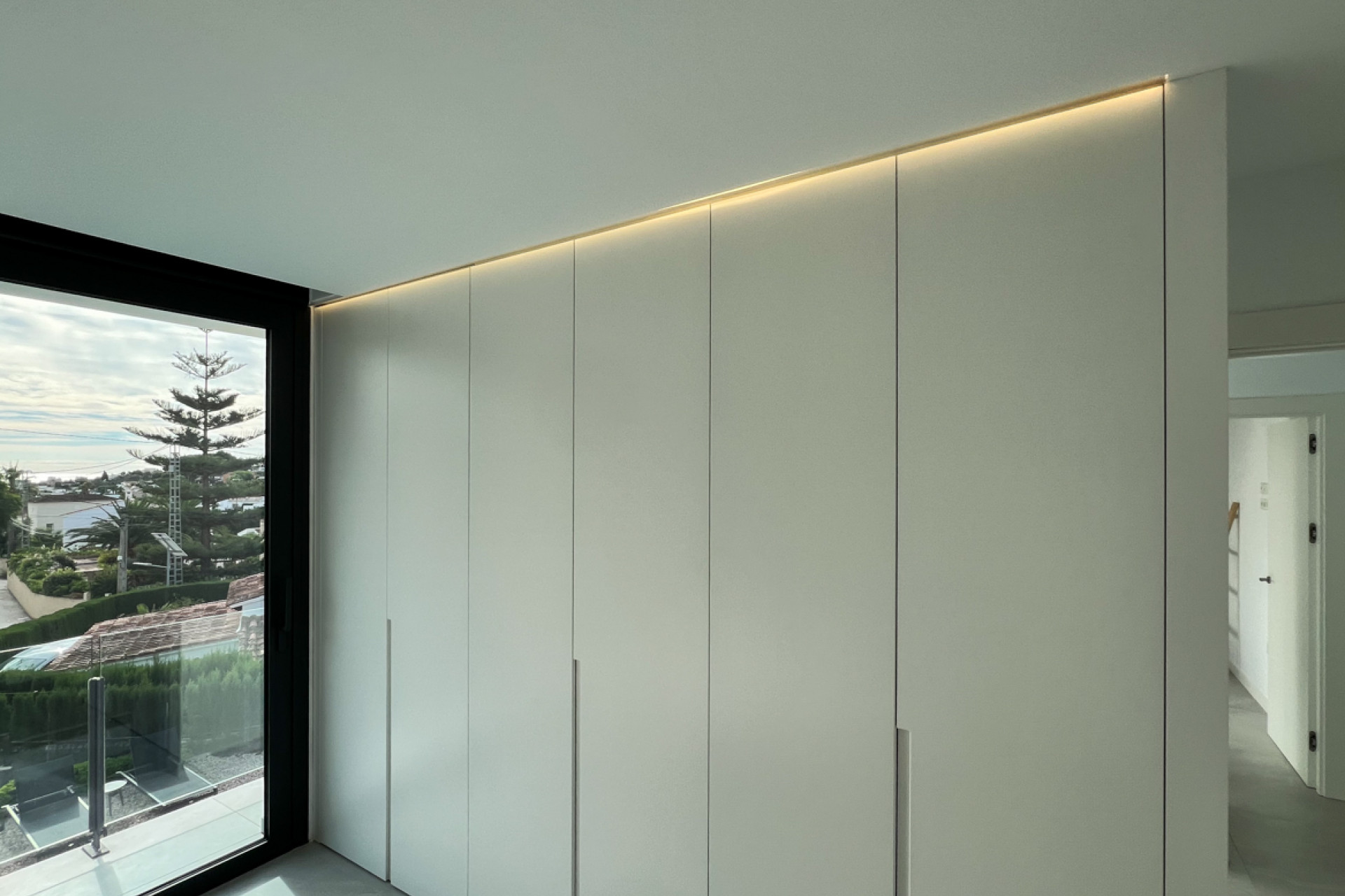 Moderne villa met uitzicht op zee dichtbij het strand van FusteraOntdek hedendaagse luxe in deze moderne villa met uitzicht op zee, ideaal gelegen op slechts 600 meter van het pittoreske La Fustera-strand in Benissa, Costa Blanca. Deze prachtige villa met vier slaapkamers, voltooid in 2023, heeft een strak architectonisch ontwerp met natuurstenen elementen en een ligging op het zuiden op een vlak, volledig omsloten perceel.De villa heeft gedeeltelijk zeezicht en open uitzicht, waardoor je verzekerd bent van een rustige en privé omgeving. De zorgvuldig aangelegde tuinen hebben een zomerterras, perfect om buiten te dineren. Binnen zorgen hoogwaardige materialen voor stijlvolle en comfortabele leefruimtes.De doordacht ontworpen begane grond heeft een ruime woonkamer die uitkomt op het terras bij het zwembad, en een moderne keuken en eethoek die naadloos overloopt in het eetterras buiten. Een handige badkamer met douche bevindt zich ook op dit niveau.De eerste verdieping biedt twee luxe slaapkamersuites, elk met een eigentijdse en suite badkamer, evenals twee extra tweepersoonsslaapkamers die een goed ingerichte badkamer delen.Belangrijkste kenmerken:Oriëntatie op het zuiden voor de hele dag zonGedeeltelijk zeezicht en open uitzichtRustige woonwijk, vrij van verkeerslawaaiVloerverwarming en airconditioningUitgebreid alarmsysteem met beveiligingscamera'sToplocatie, op loopafstand van La Fustera BeachOver La Fustera Beach: La Fustera Beach in Benissa is een charmante zandbaai met kristalhelder water en weelderige mediterrane vegetatie, perfect om te zwemmen, snorkelen en ontspannen met het gezin. Het strand biedt uitstekende voorzieningen, waaronder nabijgelegen restaurants, een bar aan het strand en een supermarkt. Een schilderachtig kustpad verbindt La Fustera met andere nabijgelegen baaien en biedt een adembenemend uitzicht op de iconische Peñón de Ifach in Calpe.Deze uitzonderlijke moderne villa biedt de perfecte mix van stijl, comfort en gemak, met moeiteloze toegang tot het strand van La Fustera en alle essentiële voorzieningen. Mis de kans niet om dit stukje paradijs aan de Costa Blanca te bezitten.
