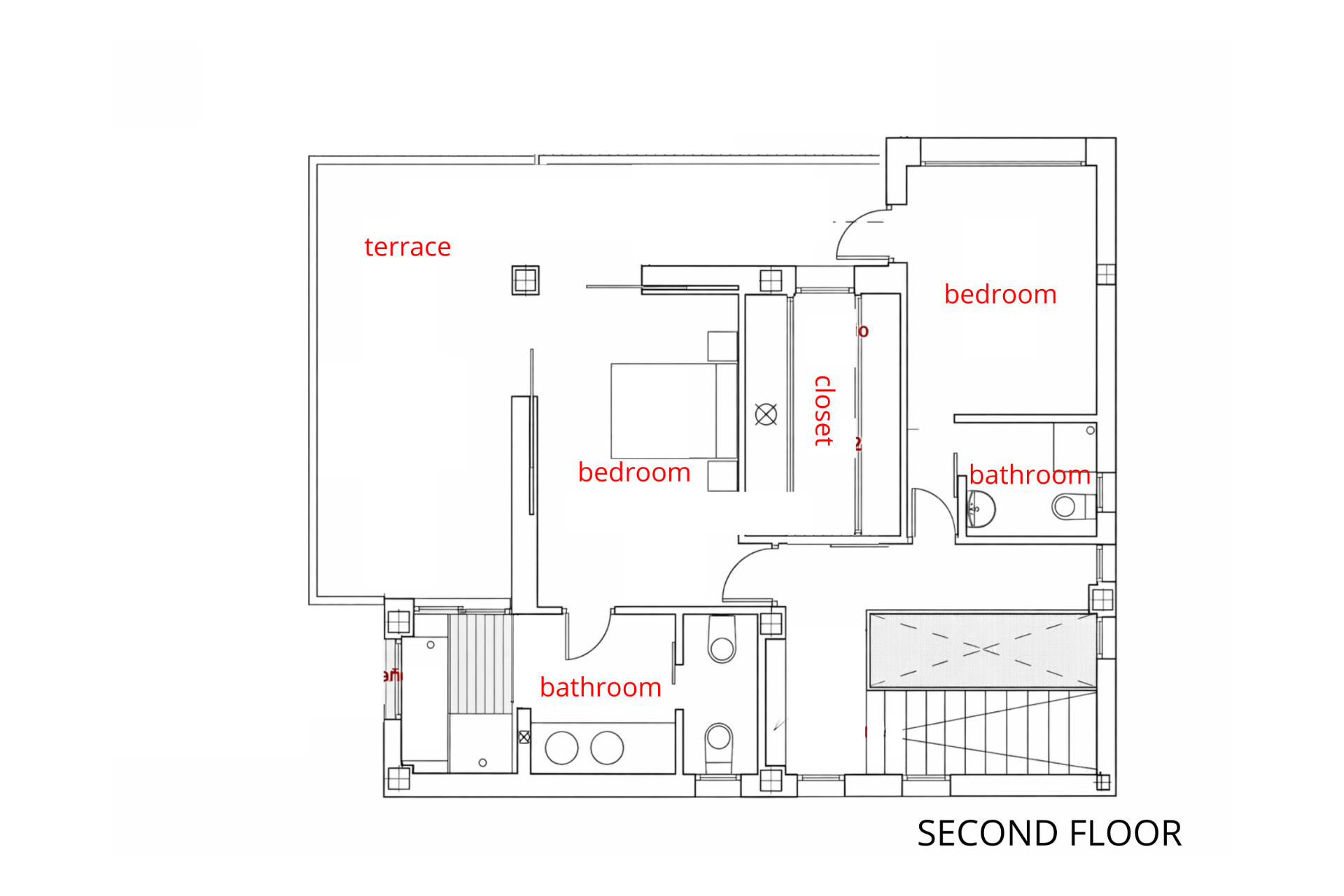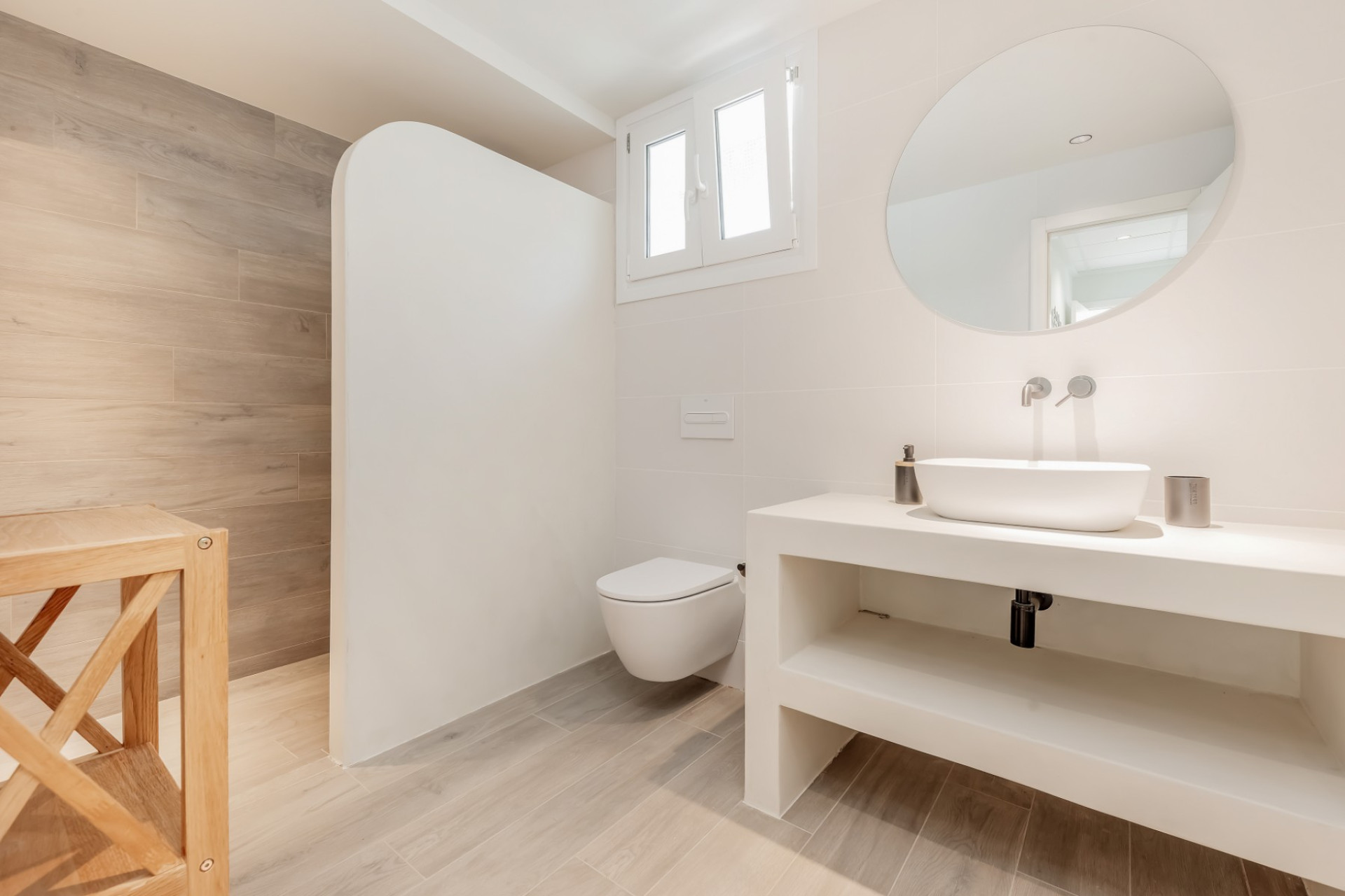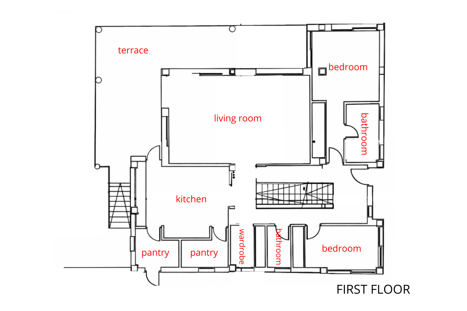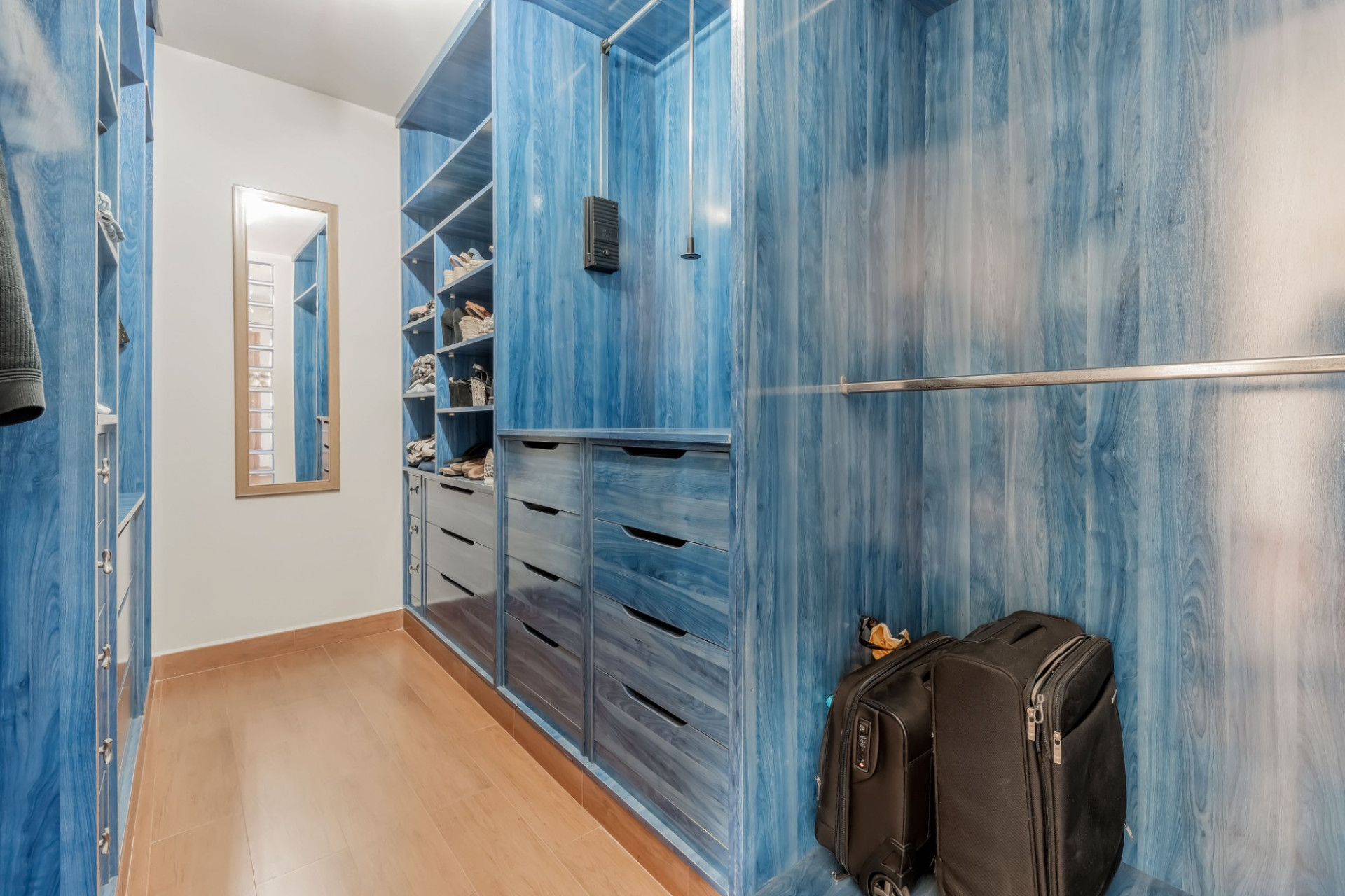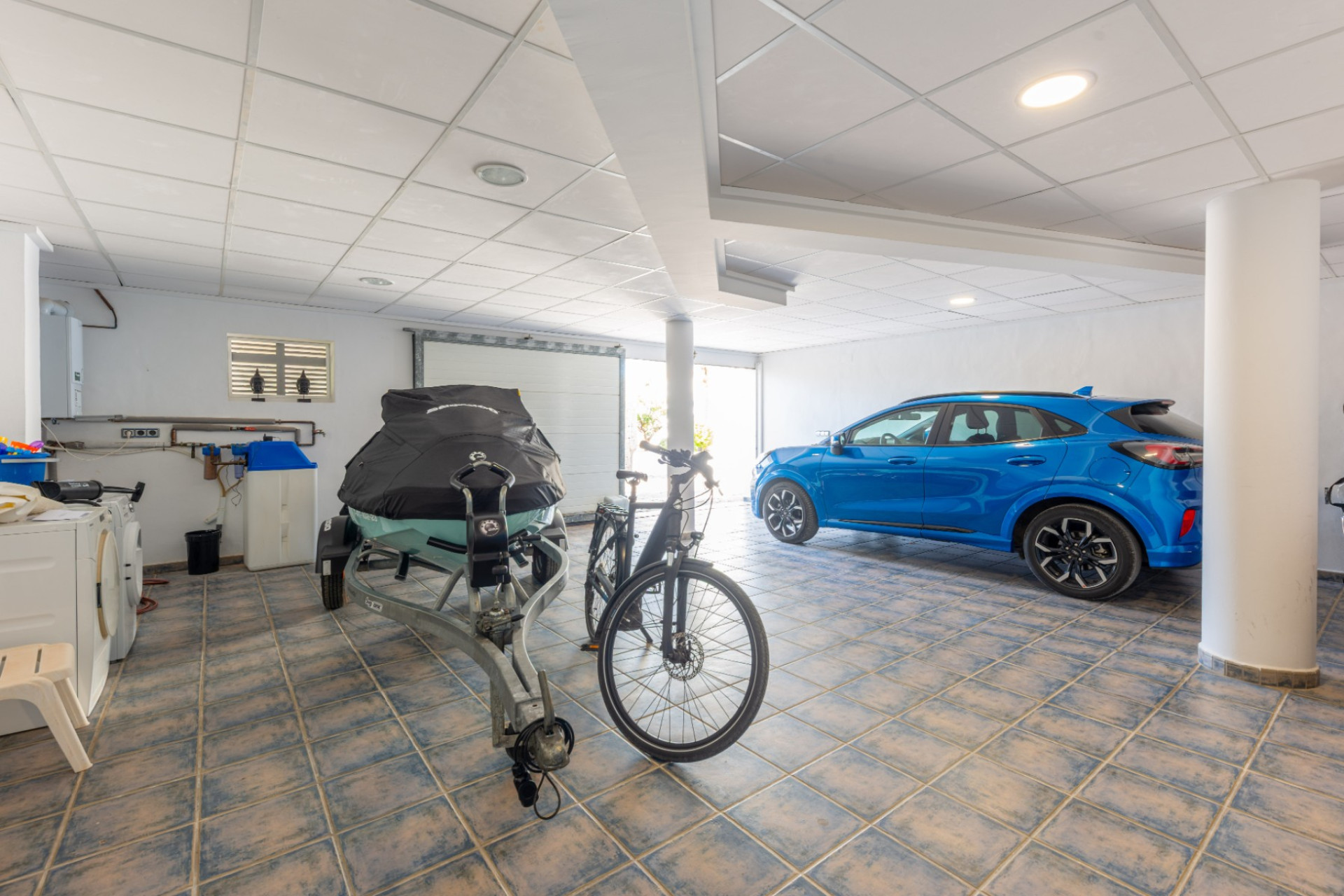 Op de begane grond bevindt zich een ruime garage met plaats voor meerdere auto’s. Daarnaast is er een woonkamer met schuifdeuren die direct toegang geven tot het terras en het zwembad. Daarnaast een gang naar twee ruime slaapkamers en een gedeelde badkamer. De eerste verdieping beschikt over een woon- en eetkamer met toegang tot een overdekte naya op het zuiden, met een schitterend zeezicht. Verder vindt u hier een keuken met aparte opslagruimte, een garderobekast, twee slaapkamers en twee badkamers, waarvan één en-suite. De bovenste verdieping bestaat uit twee ruime slaapkamers, beide met een en-suite badkamer. Eén slaapkamer beschikt tevens over een ruime inloopkast. Via schuiframen hebben beide kamers toegang tot een groot buitenterras met zeezicht. De buitenruimte bestaat uit een volwassen, onderhoudsvriendelijke mediterrane tuin met, naast de garage, voldoende ruimte om meerdere auto’s op eigen terrein te parkeren.