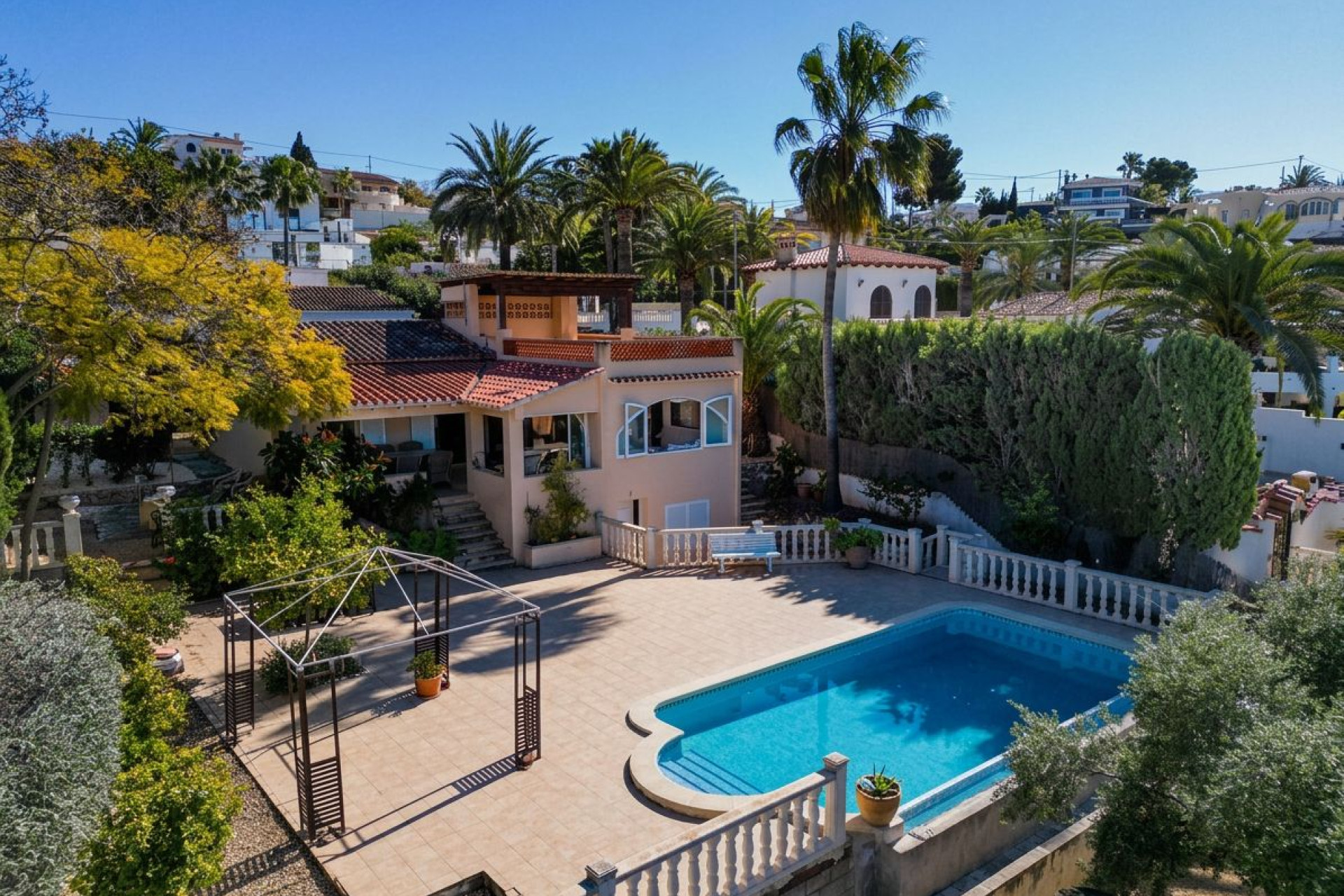 Gelegen in het prestigieuze Benissa Costa, biedt deze vrijstaande villa een goed gebalanceerde combinatie van ruimte, privacy en nabijheid van de kust, op korte afstand van lokale baaitjes en voorzieningen. Gevestigd op een 734 m² perceel met een gebouwde oppervlakte van ongeveer 213 m², is het pand verdeeld over meerdere niveaus en ontworpen om zowel binnen- als buitenleven te maximaliseren. De hoofdwoonruimte omvat een lichte en ruime woonkamer, een functionele keuken en goed proportioneerde slaapkamers, die comfortabele accommodatie biedt voor zowel permanent woongebruik als vakantieverhuur. De indeling staat flexibele ruimte-inzet toe, inclusief de mogelijkheid om gasten te ontvangen of aparte zones binnen de woning te creëren. Extern profiteert de villa van een privé zwembad en omliggende terrassen, die meerdere gebieden bieden voor ontspanning en vermaak. De buitenruimte is ontworpen om optimaal gebruik te maken van het Mediterrane klimaat, met open gebieden evenals schaduwrijke zones voor gebruik het hele jaar door. Het pand omvat ook extra ruimte die kan worden aangepast als gastenverblijf, waardoor de aantrekkingskracht voor gezinsgebruik of verhuurmogelijkheden toeneemt. Het perceel biedt privacy terwijl het zich binnen een goed gevestigde woonomgeving bevindt. Buenavista is een van de meest gewilde gebieden van Benissa Costa, bekend om zijn nabijheid van de zee en gemakkelijke toegang tot nabijgelegen steden zoals Moraira en Calpe, die beide een breed scala aan restaurants, stranden en diensten bieden. Dit pand vertegenwoordigt een sterke kans om een villa in Benissa Costa met privé zwembad en flexibele woonruimte aan te schaffen, ideaal als primaire woning, tweede huis of investering in een van de meest gewilde kustlocaties van de Costa Blanca.